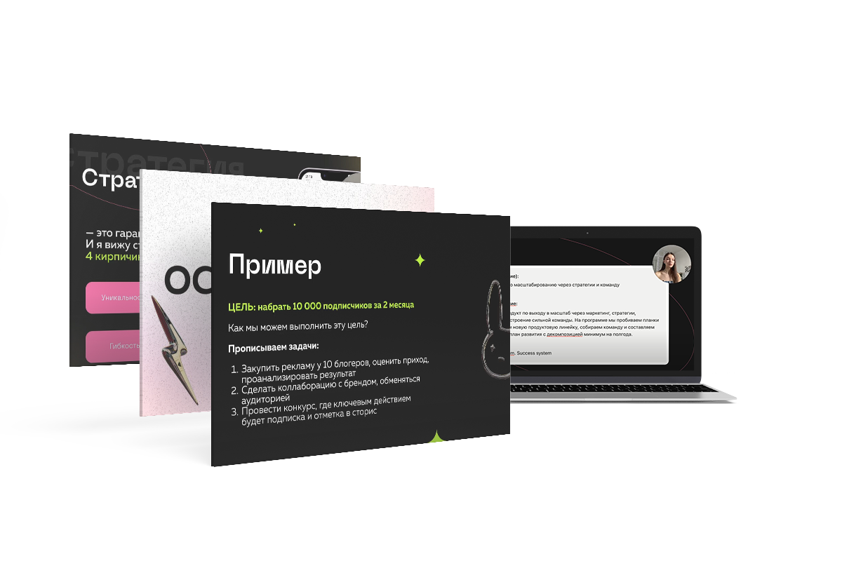 В результате ты уйдёшь со своей первой настоящей маркетинговой стратегией, которую можно внедрять в свои проекты и получать результаты в х00 000 руб+